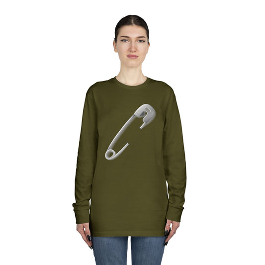 Long Sleeve Crewneck Tee - Minimalist Safety Pin Design