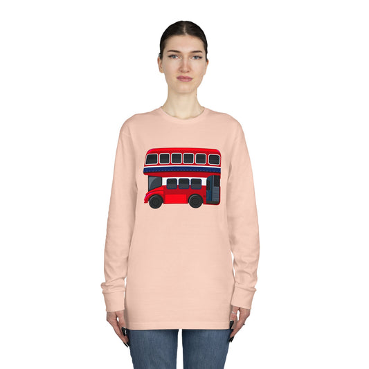 Long Sleeve Crewneck Tee - London Transport English Bus - Iconic Red Double-Decker Design