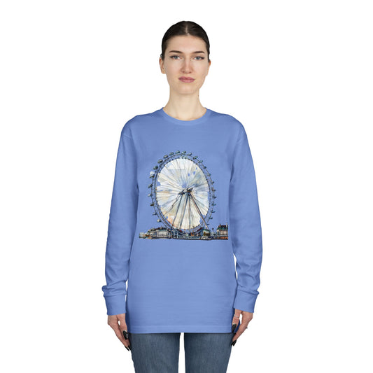 Long Sleeve Crewneck Tee - London Eye - Iconic Ferris Wheel Watercolor Art