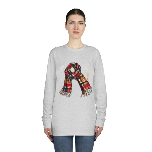 Long Sleeve Crewneck Tee - Plaid British Scarf - Timeless Style and Classic Elegance