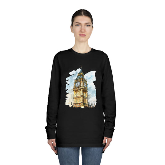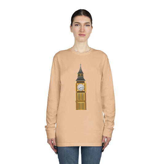 Long Sleeve Crewneck Tee - Towering Time - Big Ben and British Heritage