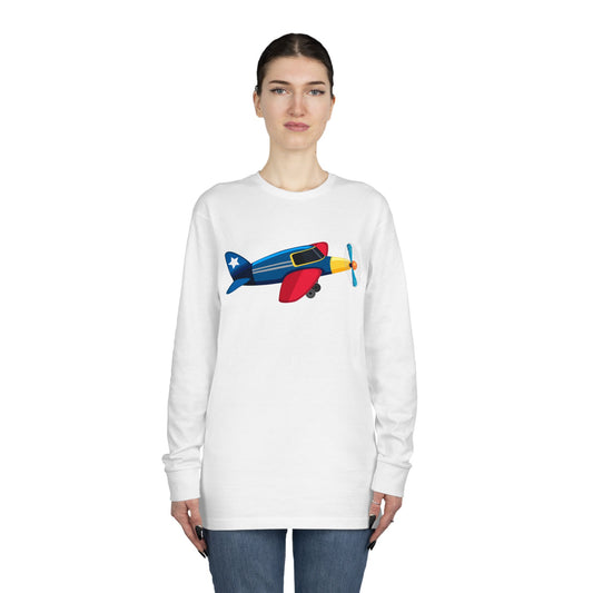 Long Sleeve Crewneck Tee - Vintage Airplane Illustration - Retro Aviation Design