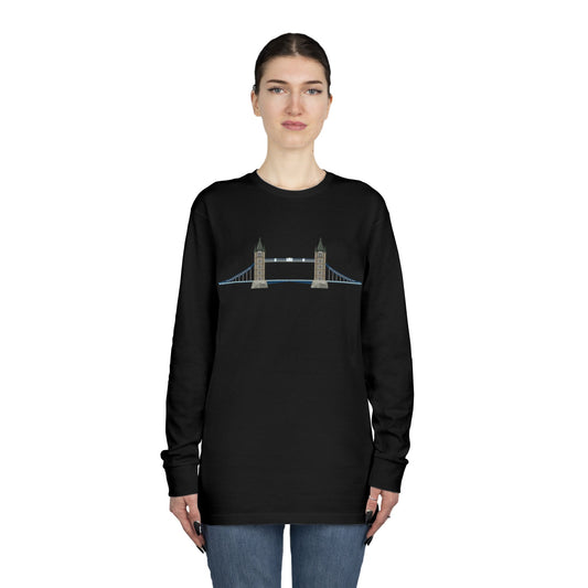 Long Sleeve Crewneck Tee - Tower Bridge - Iconic London Landmark Illustration