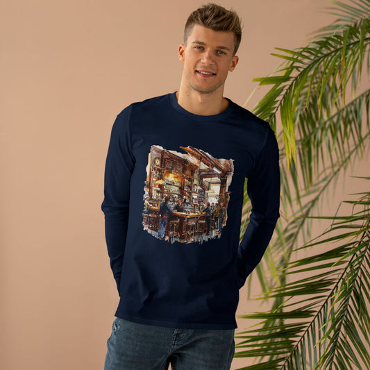 Men’s Base Longsleeve Tee - London Pub Interior - Cozy British Tavern