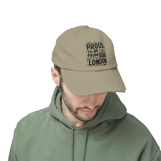 Proudly London Distressed Cap | Unisex Cap for Travelers, Fashionable Headwear, Gift for London Lovers, Casual Style, Summer Accessory