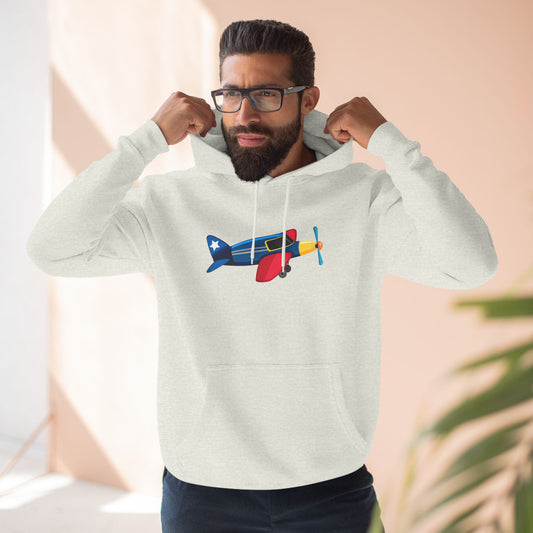 Three-Panel Fleece Hoodie - Retro Colorful Airplane Artwork