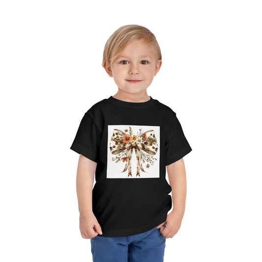Toddler Short Sleeve Tee – Rustic Floral Cowhide Bow Illustration - Cute Kids' Shirt for Birthdays & Special Occasions
