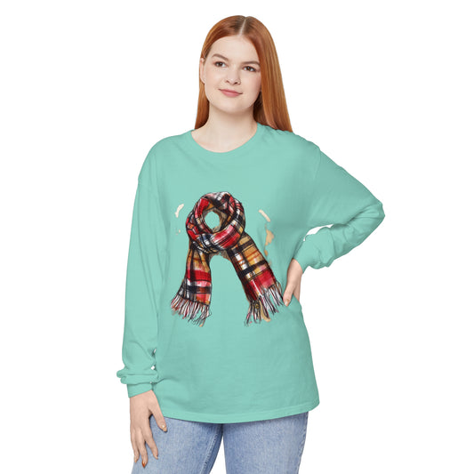 Unisex Garment-dyed Long Sleeve T-Shirt - Classic British Plaid Scarf Design
