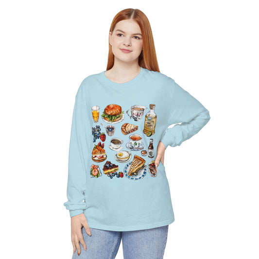 Unisex Garment-dyed Long Sleeve T-Shirt - Delicious Feast of National Favorites