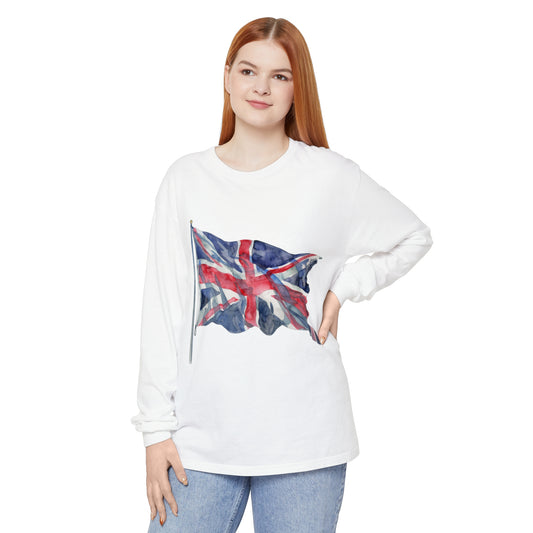 Unisex Garment-dyed Long Sleeve T-Shirt - Classic UK Flag Design