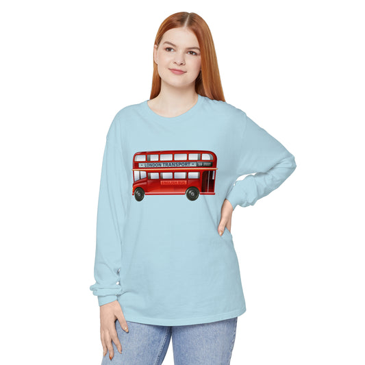 Unisex Garment-dyed Long Sleeve T-Shirt - Through London’s Streets - The Red Double-Decker