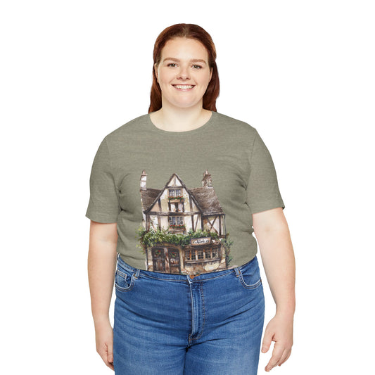 Unisex Jersey Short Sleeve Tee - Cottages & Cobblestones - A British Village Dream