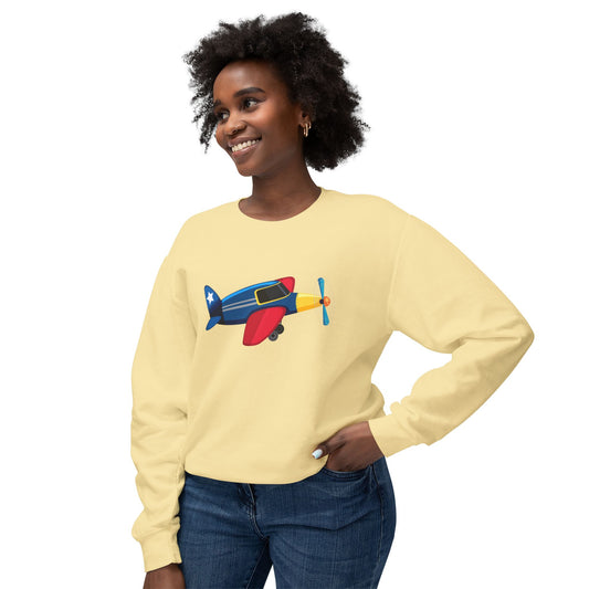 Unisex Lightweight Crewneck Sweatshirt - Colorful Vintage Airplane Illustration - Retro Aviation Design