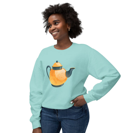 Unisex Lightweight Crewneck Sweatshirt - Classic British Tea Kettle - Timeless Elegance in Tea Time