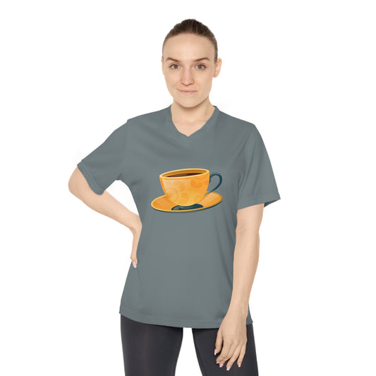 Women's Performance V-Neck T-Shirt - Perfect for Active Days - Coffee Lover - Elegant British Tea Cup - Classic Tea Time Style