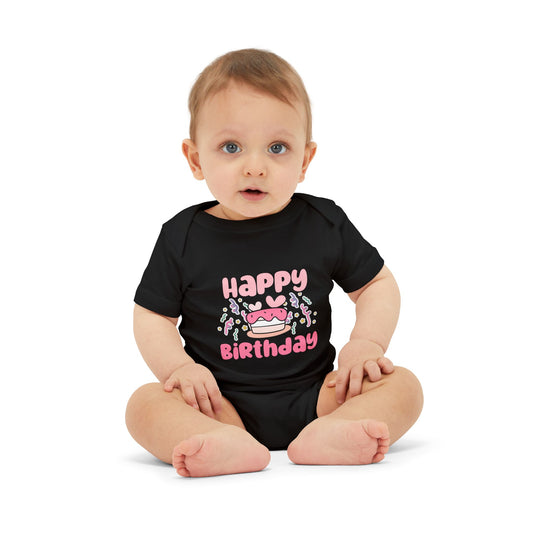 Happy Birthday Baby Bodysuit - Organic Cotton Short Sleeve Outfit