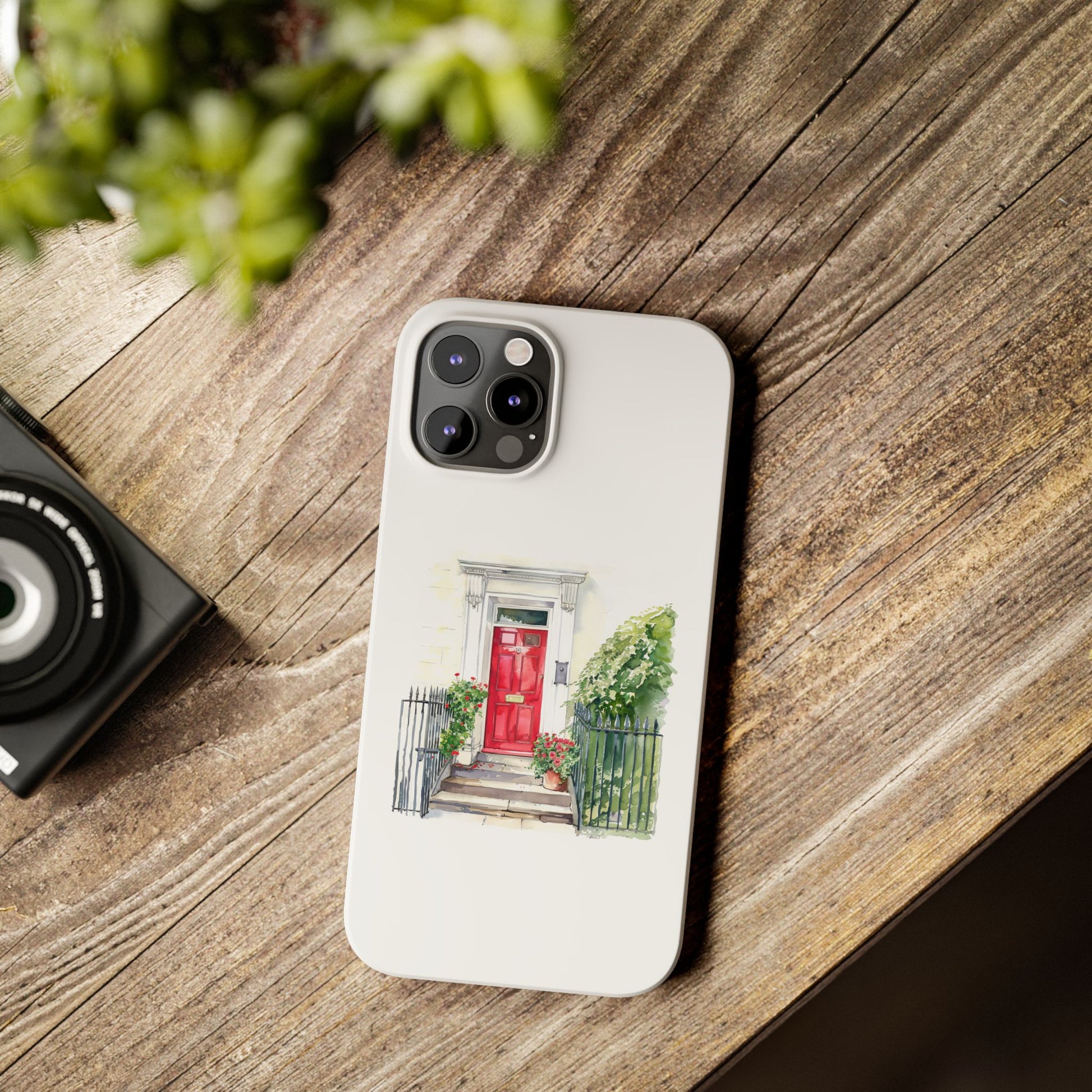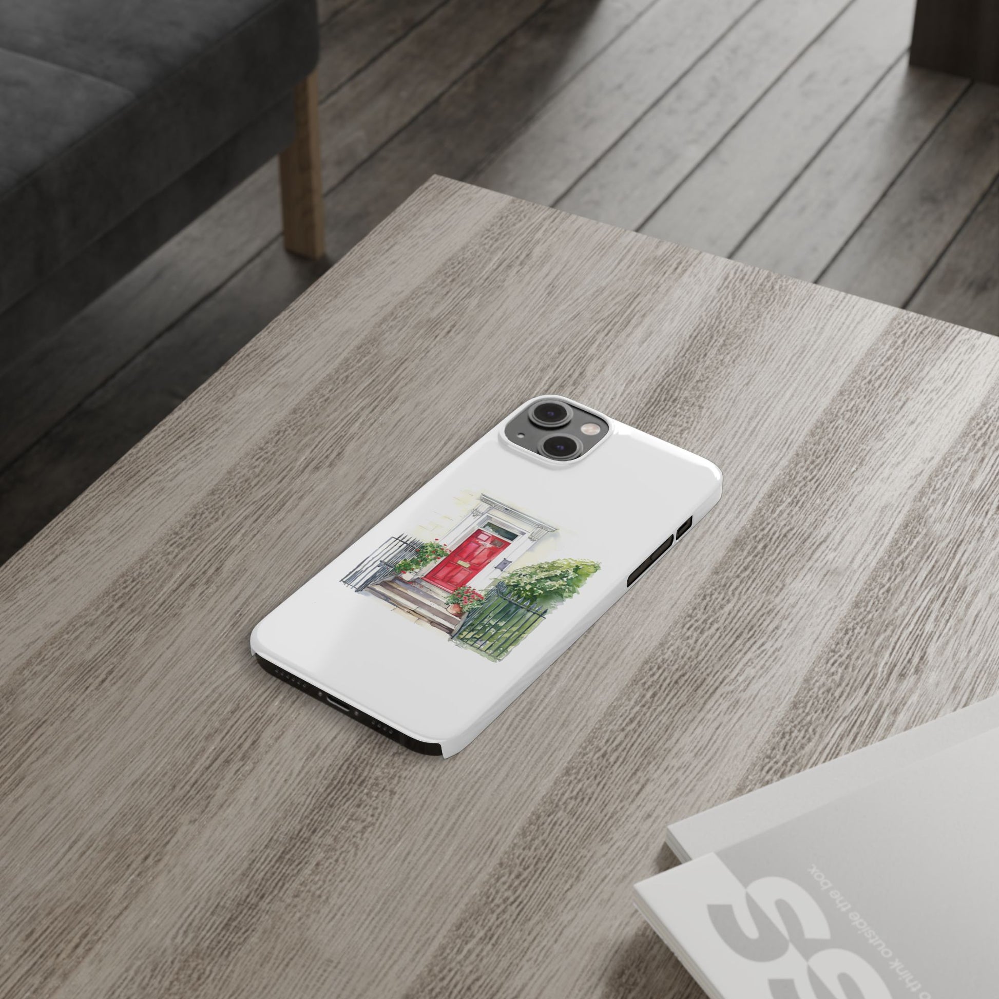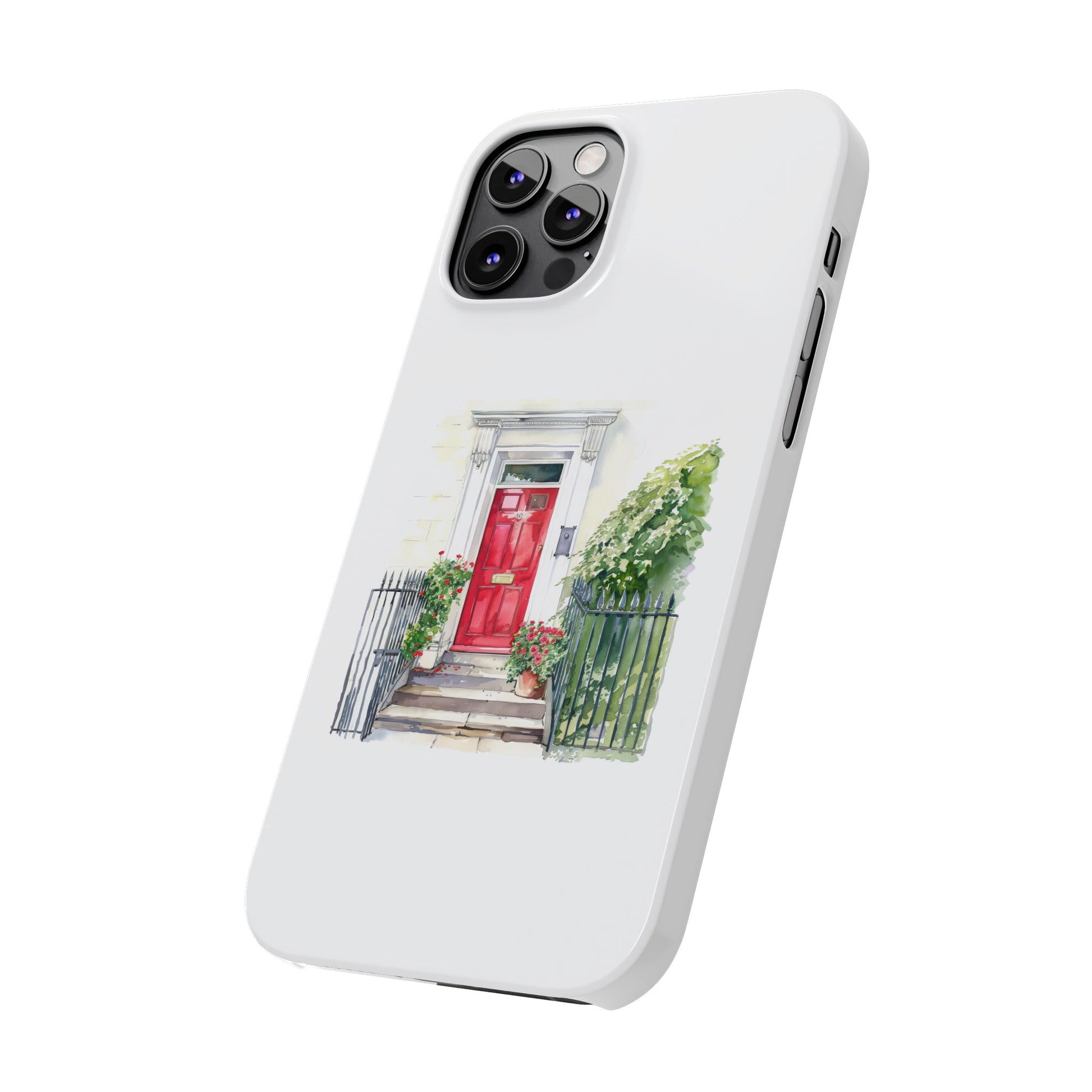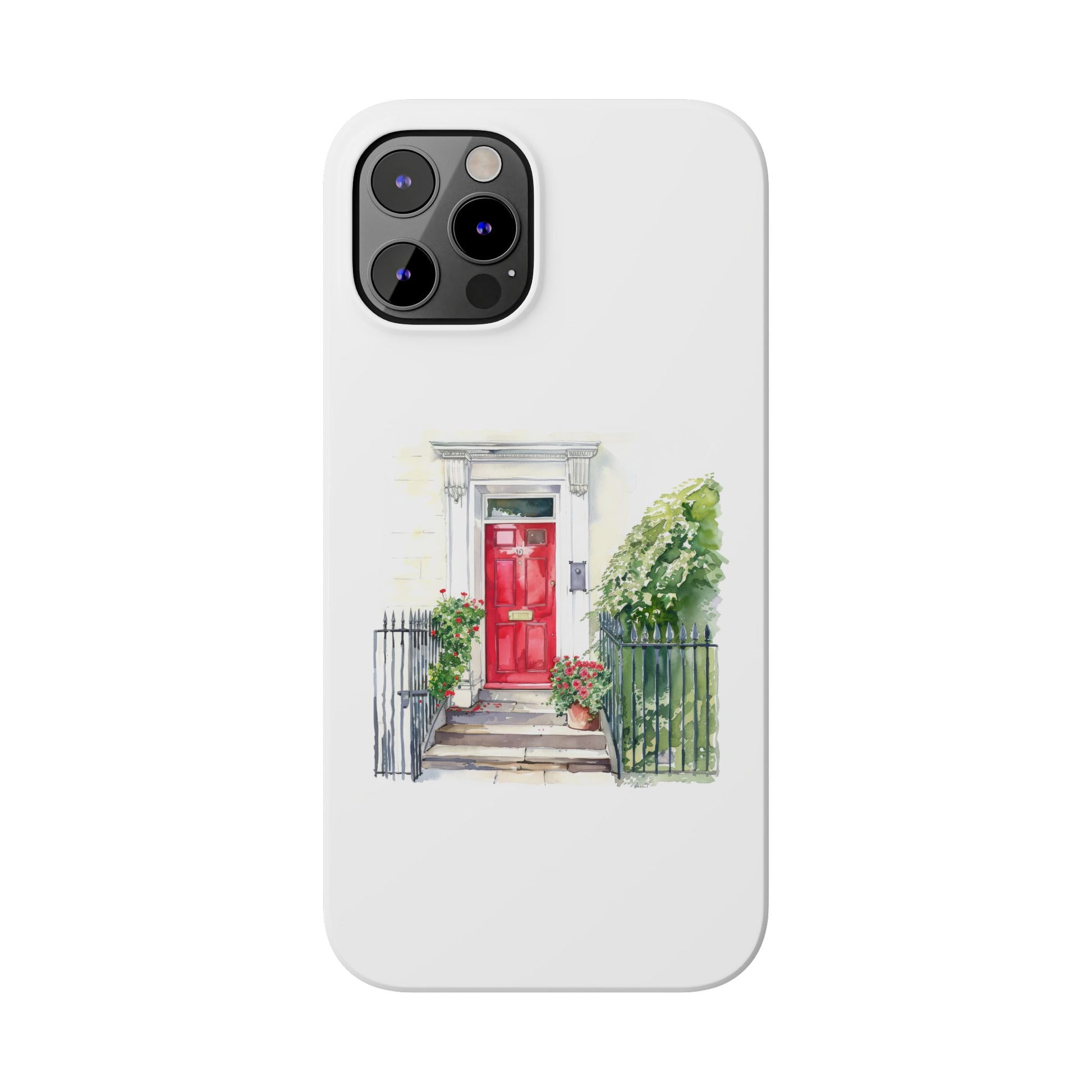 Charming Red Door Slim Phone Cases – Aesthetic Protection for Your Device, Perfect Gift for Home Lovers, Housewarming, Art Enthusiasts