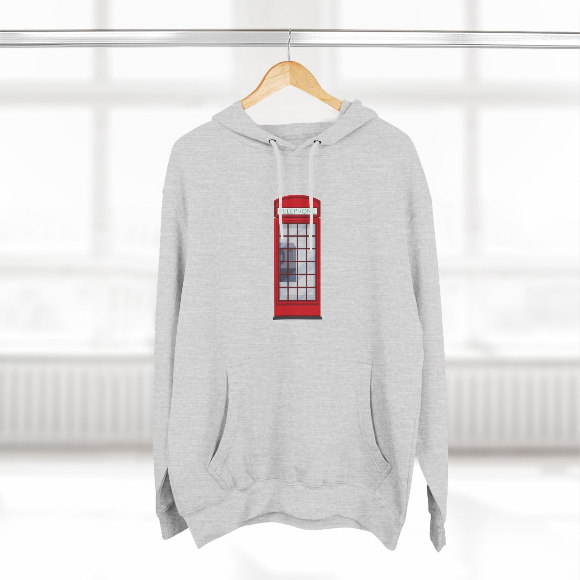 Iconic British Red Telephone Relaxed Three-Panel Fleece Hoodie