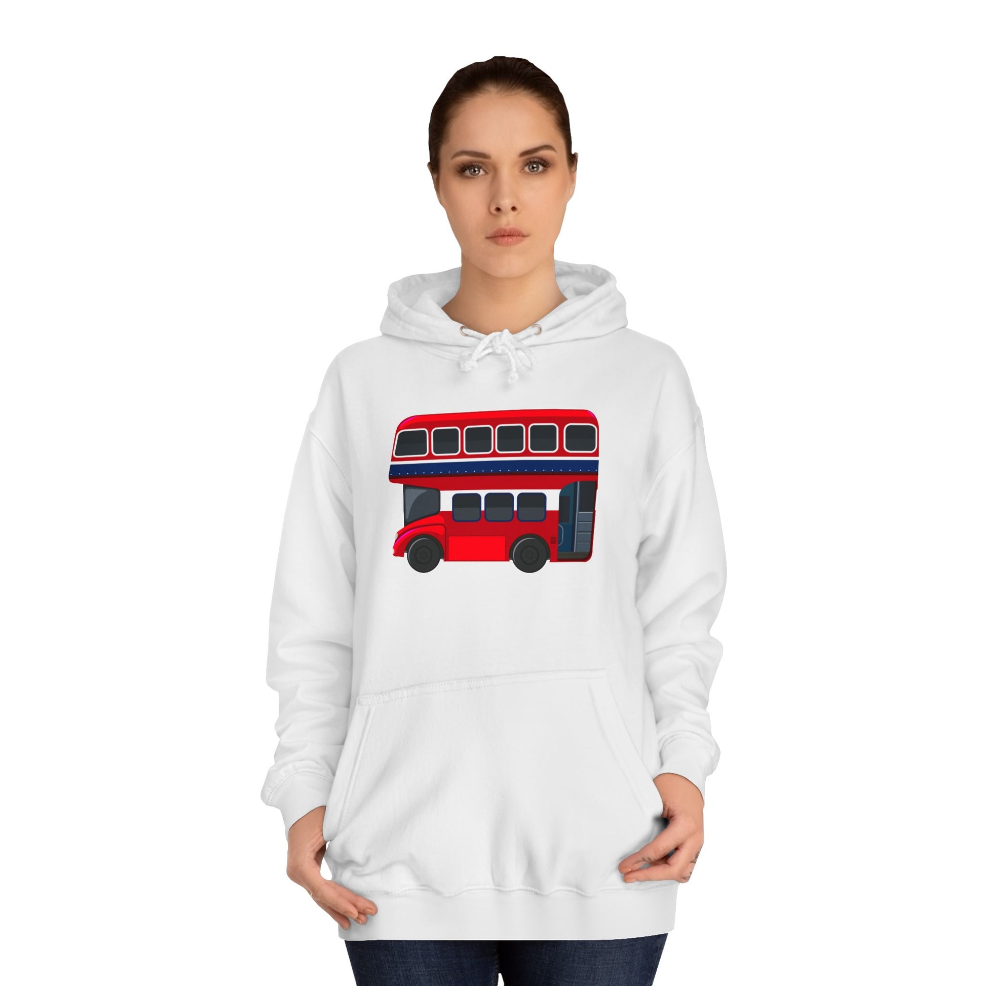 Unisex College Hoodie - Hop On! The British Double-Decker Experience