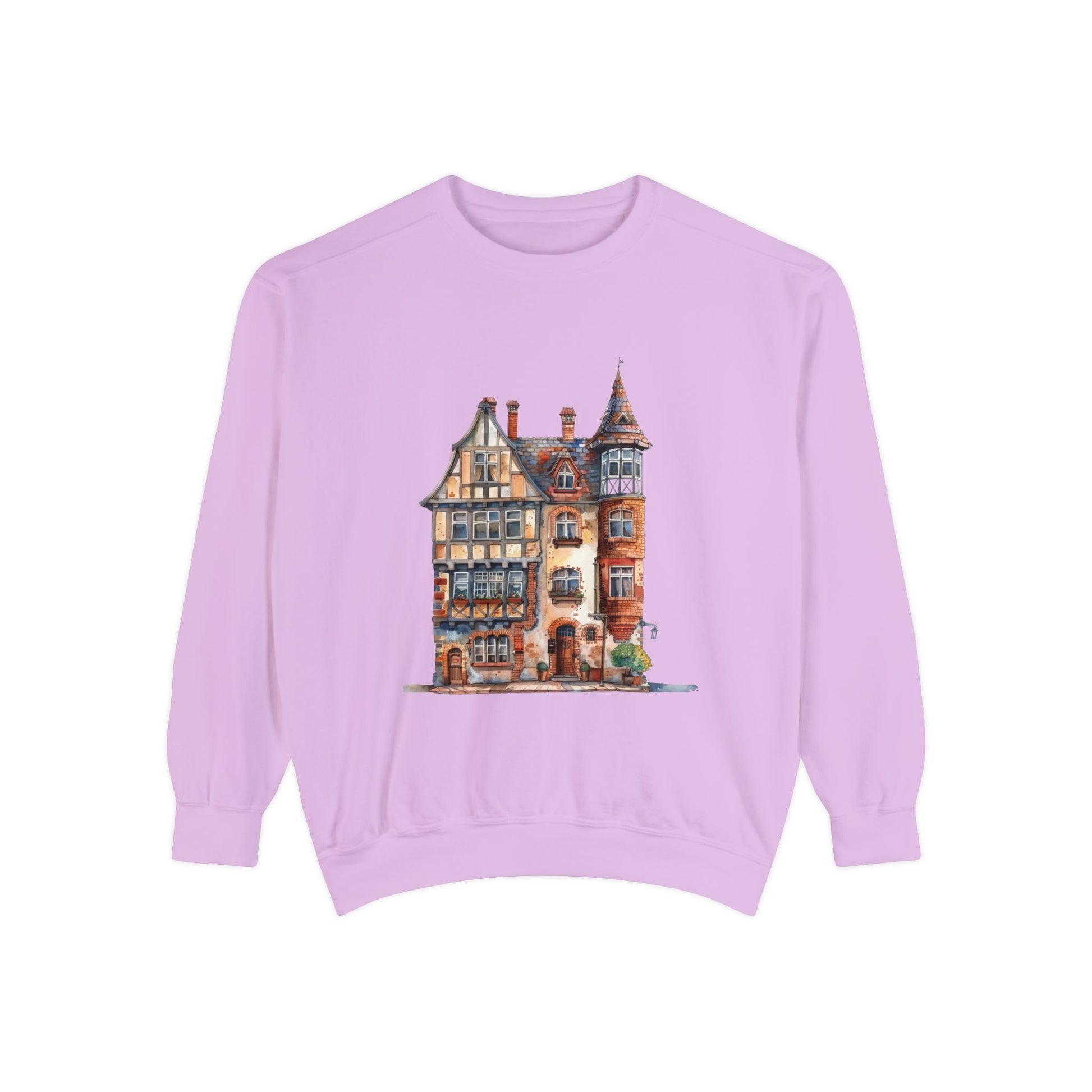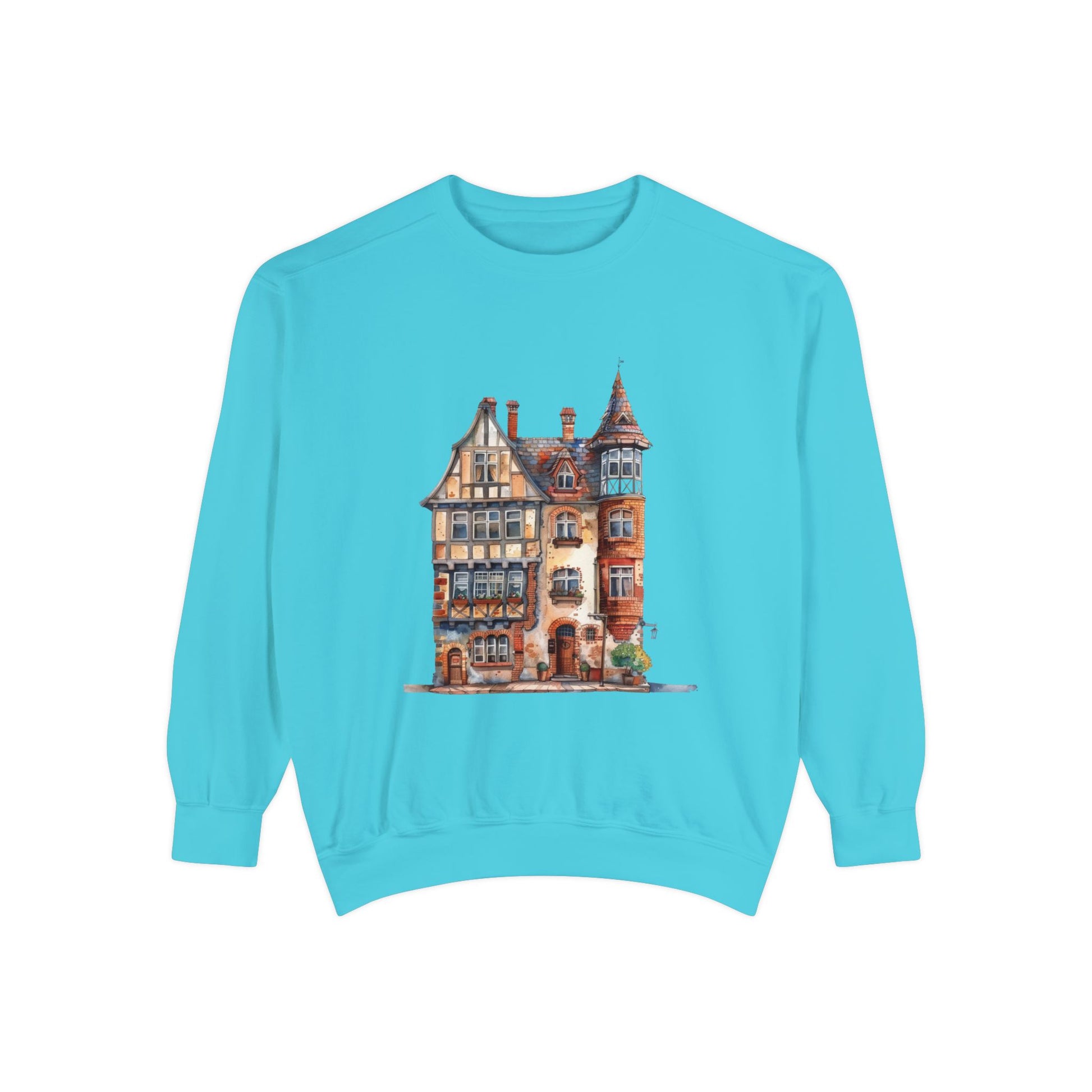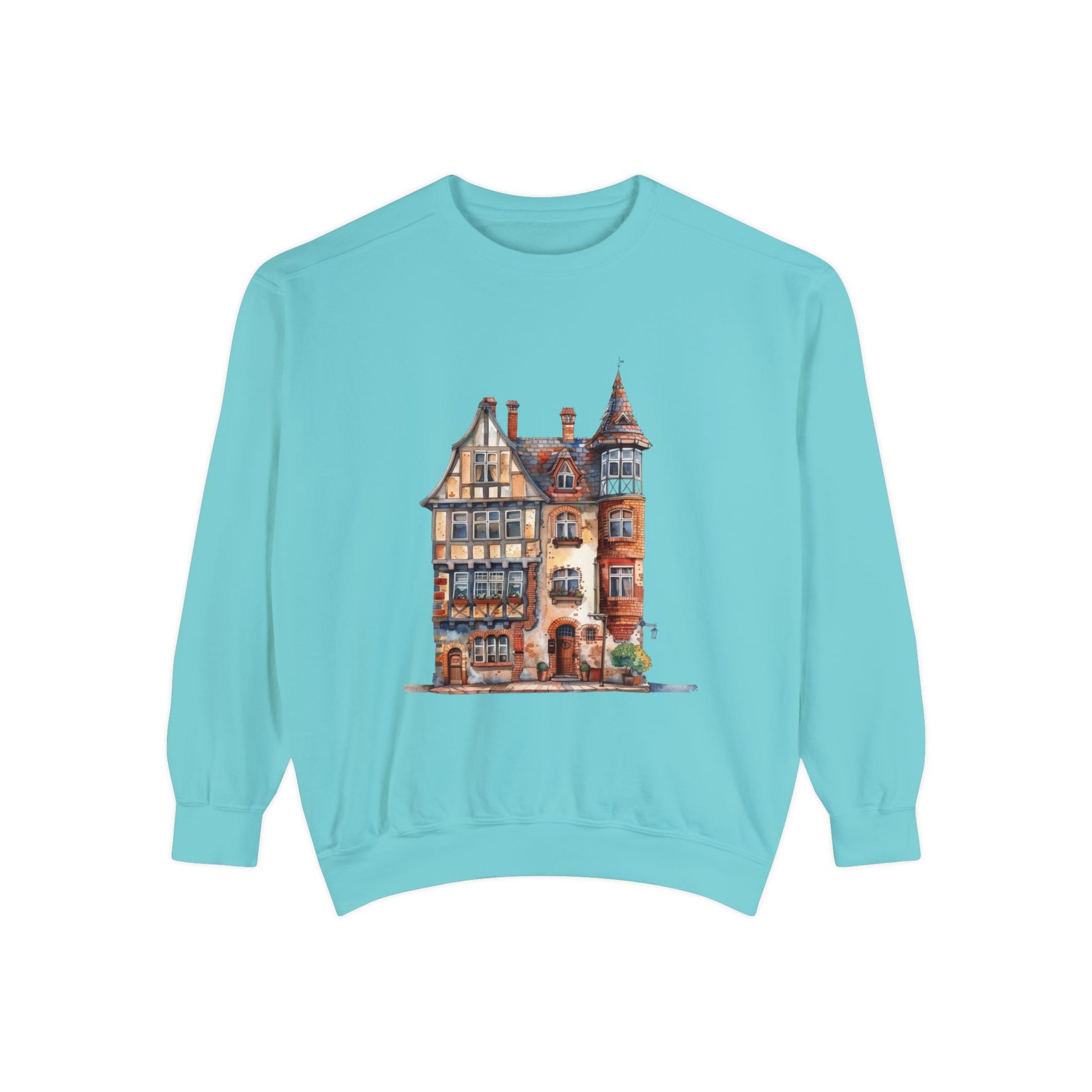 Unisex Garment-Dyed Sweatshirt - British Historic House - Classic Architectural Elegance