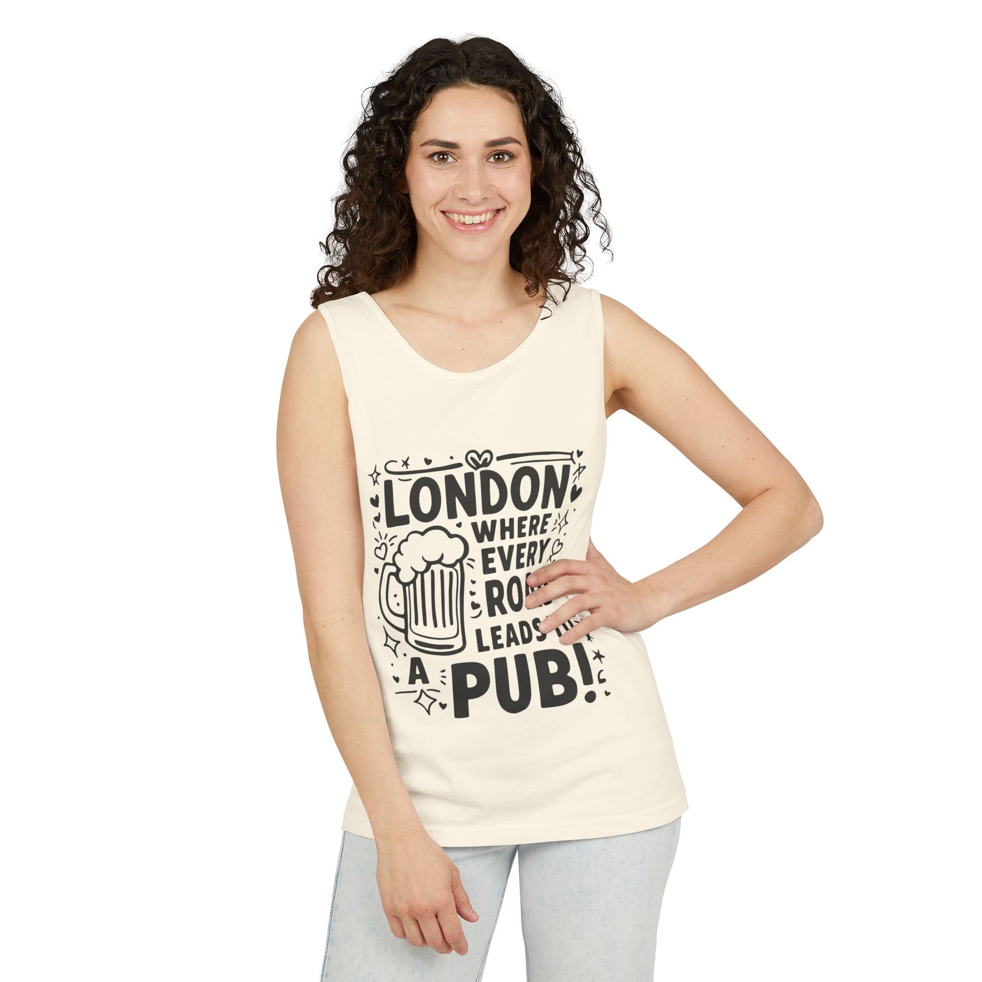 Unisex Garment-Dyed Tank Top - London where every road leads to Pub