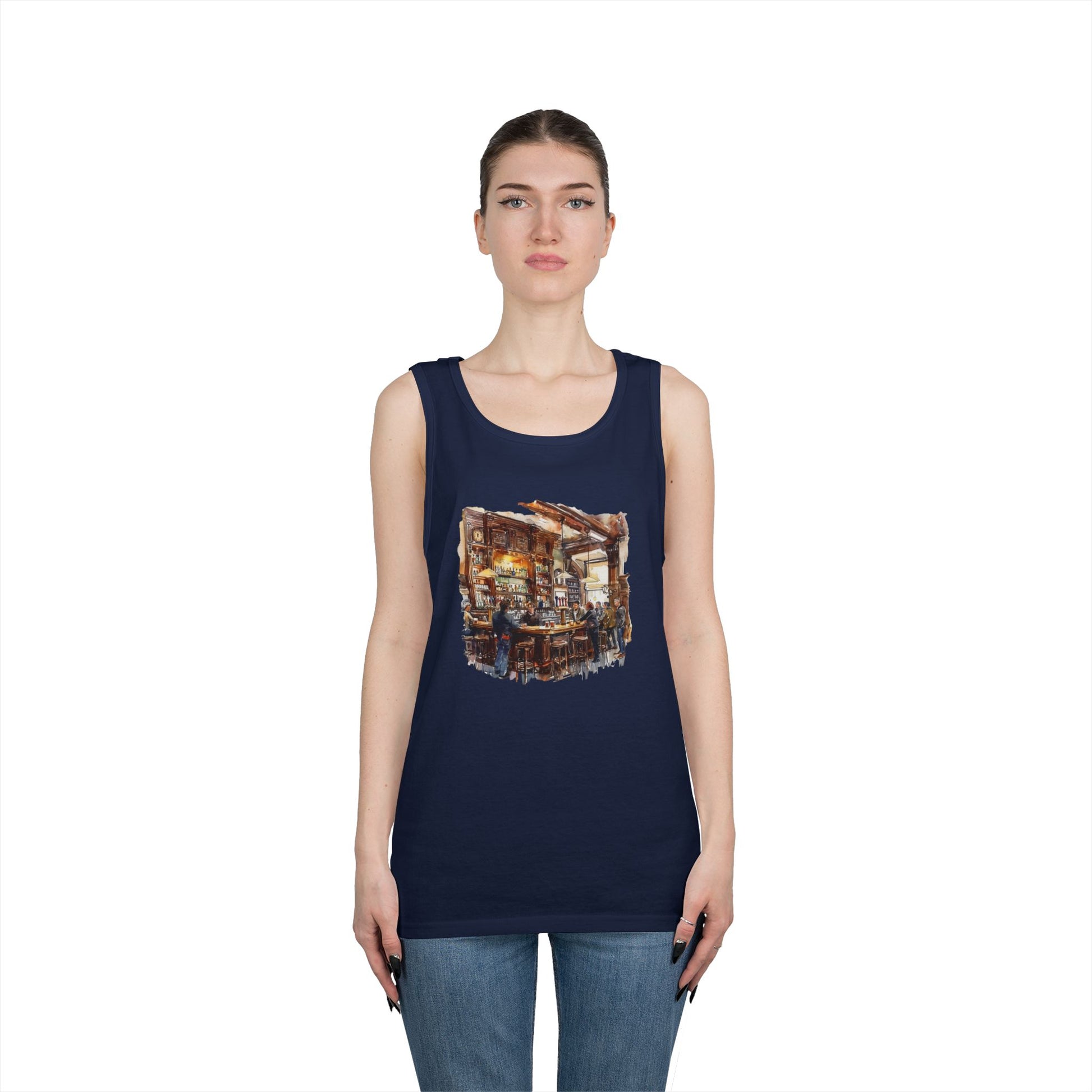 Unisex Heavy Cotton Tank Top - Classic Pub Decor Watercolor Illustration