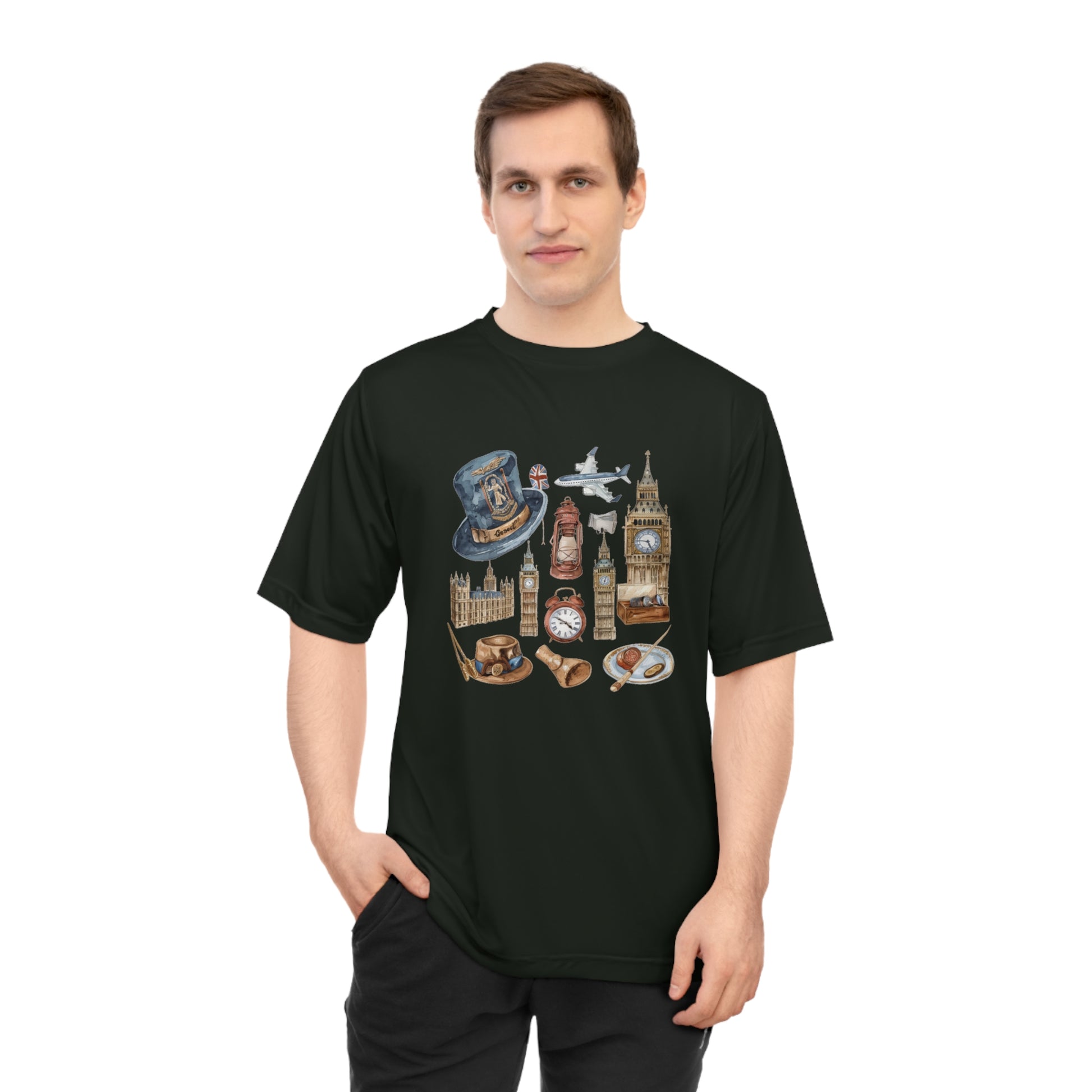 Unisex Zone Performance T-shirt - Echoes of England: Iconic Vintage Illustrations